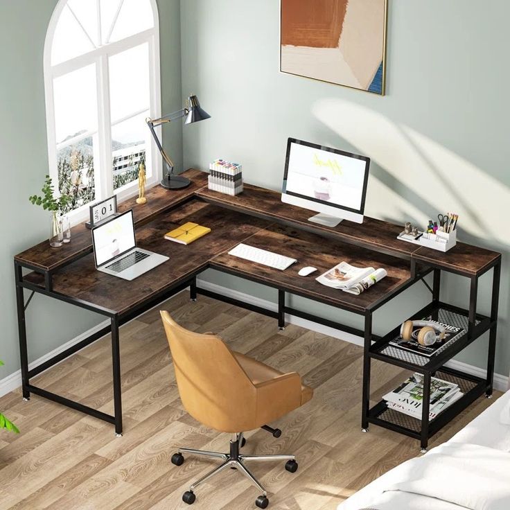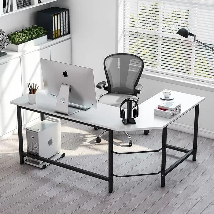 Thiết kế chữ L tăng không gian sử dụng và có thể sử dụng ở các góc tường góc nhà. Thiết kế bàn làm việc dạng này có nhiều thiết kế có thể thu gọn nếu bạn cần.