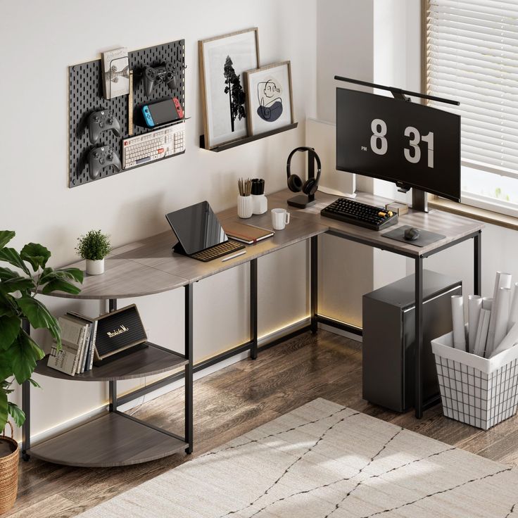 Trường hợp với bàn làm việc chữ L, giải pháp bàn làm việc thích hợp để bạn lưu trữ đồ đạt một bên.