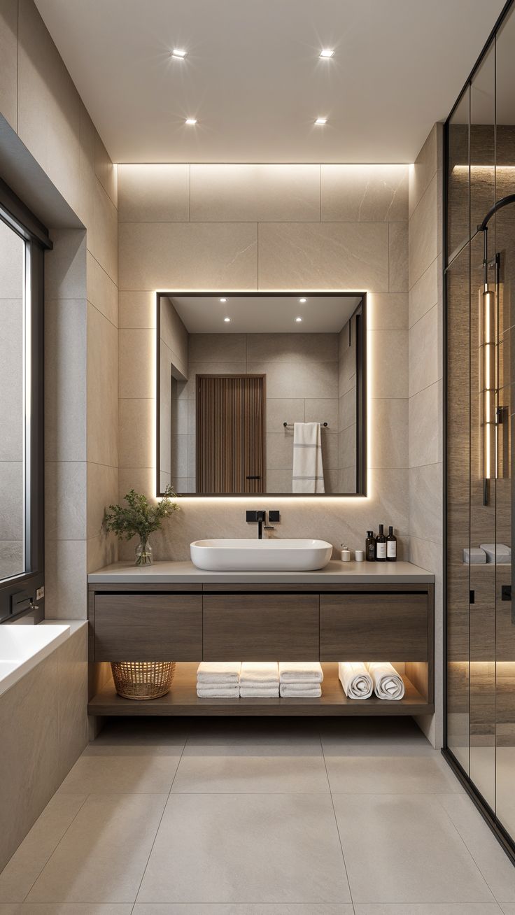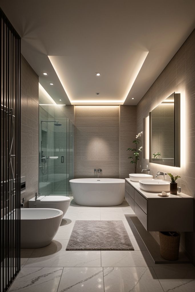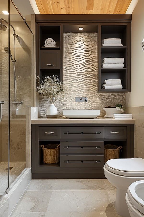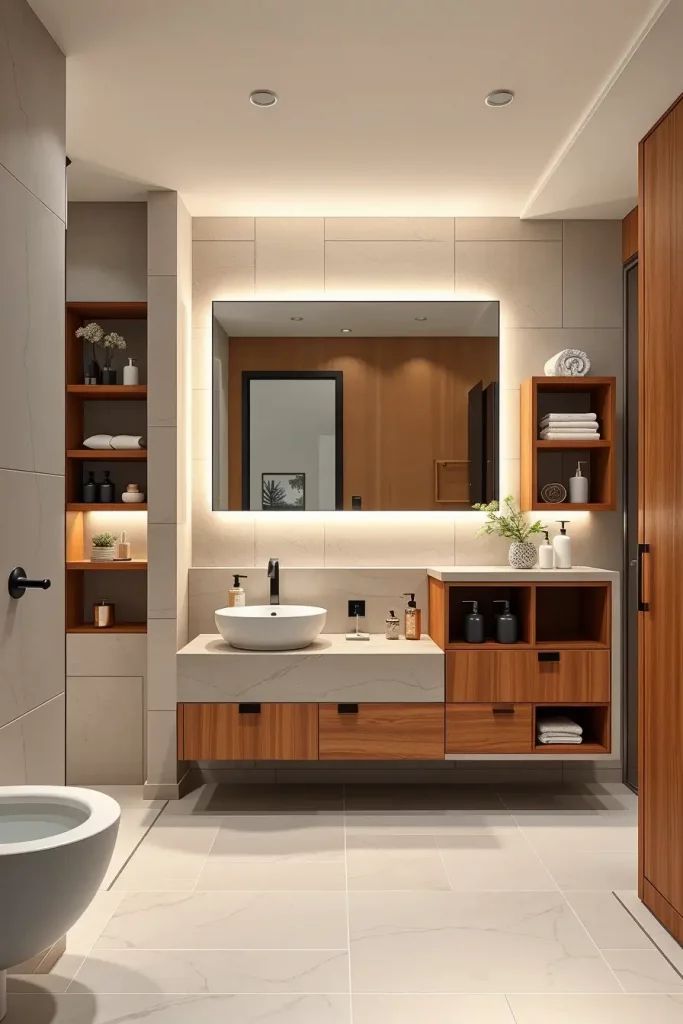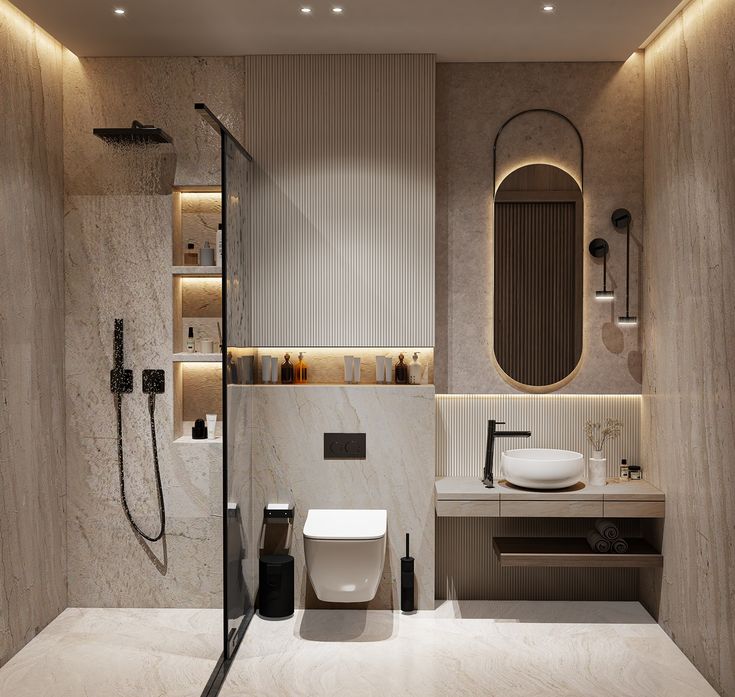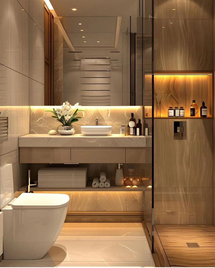 Một phong cách thường thấy cho những nhà tắm sang trọng và đẳng cấp, đây vẫn là một trong những lựa chọn tuyệt vời để tân trang cho không gian phòng tắm bạn trở nên nổi bật hơn.